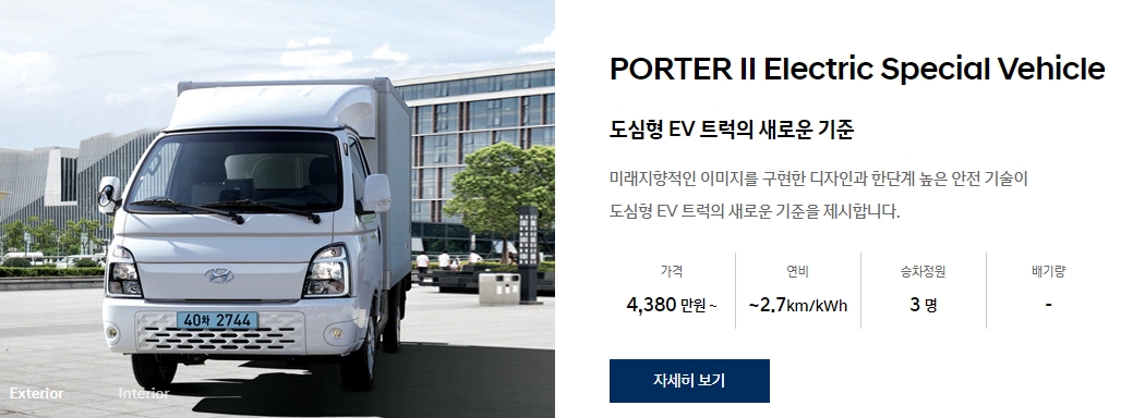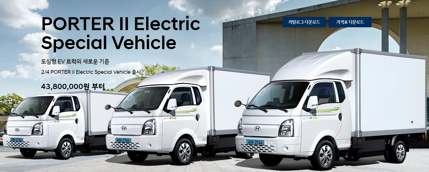 포터 2 일렉트릭, 특장차, 파워게이트, 내장탑차, 냉동탑저상, 내장탑하이 등의 이 전기차는 1600만원의 국가보조금을 지원받을 수 있습니다. 그리고 여기에 또 각 지자체별로 또 추가로 전기차 또는 수소차 구입시의 보조금이 추가됩니다.