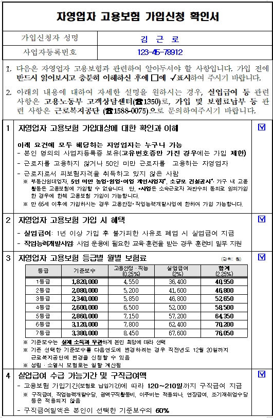 1인 자영업자 고용보험 가입 방법 실업급여 신청